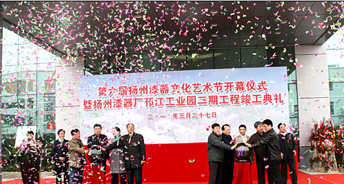 3月27日,第六届“中国•扬州漆器文化艺术节”暨扬州漆器厂新厂区二期工程竣工典礼仪式27日在中国漆器传承地扬州举行。